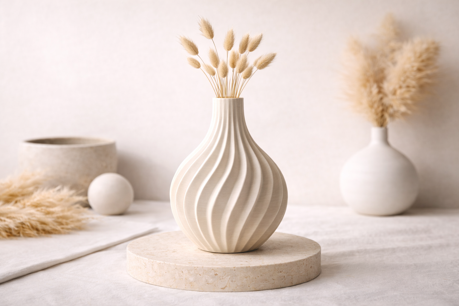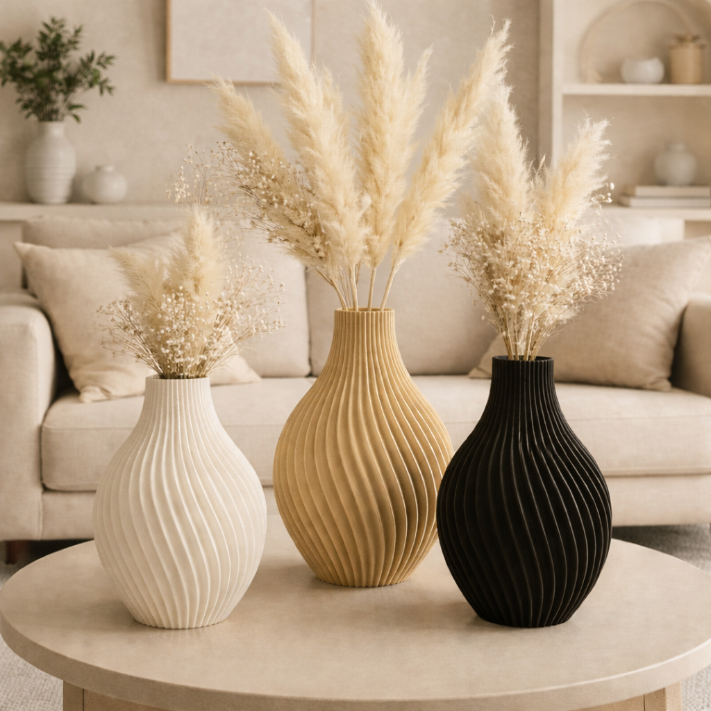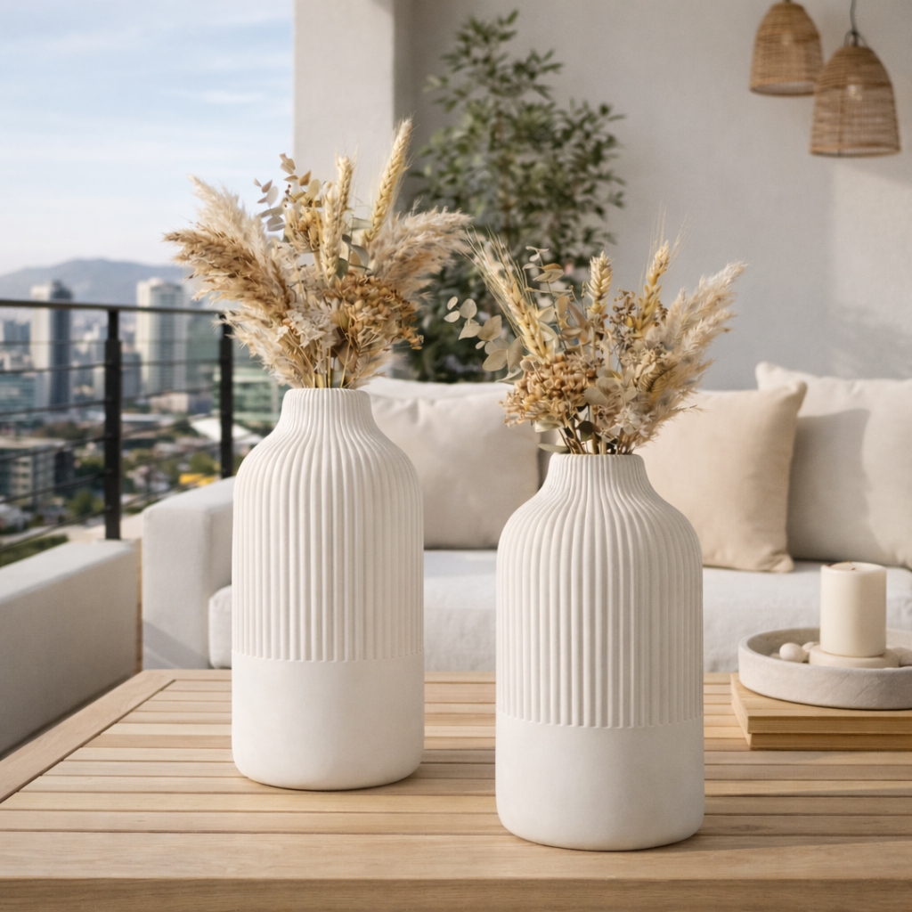 Setze elegante Akzente mit unseren modernen gerippten Designvasen. Die harmonische Kombination aus klarer Form, natürlicher Farbgebung und minimalistischer Ästhetik macht sie zum perfekten Highlight für Ihre Wohnung.